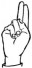 На ћирилици написано БОГДАН ЋУТКОВИЋ састоји се из 14 слова [?]. Исписано ћириличном једноручном азбуком за глувонеме: